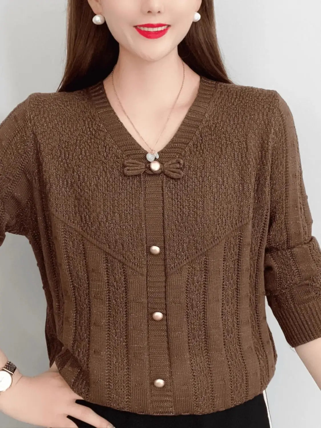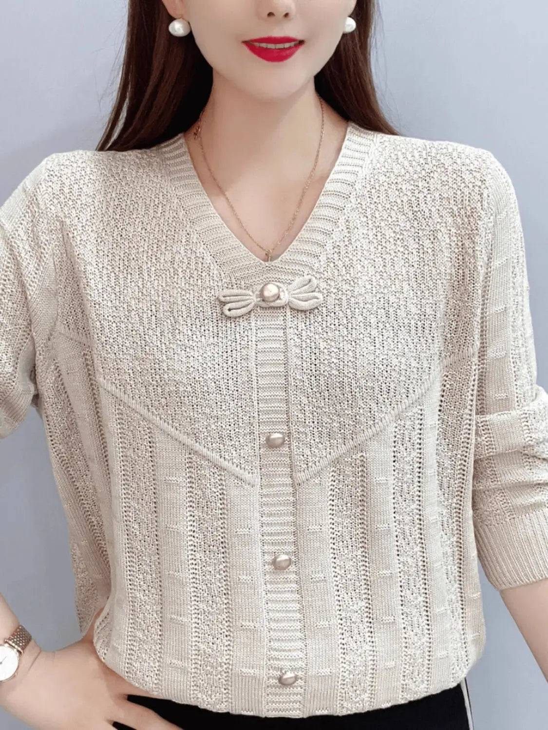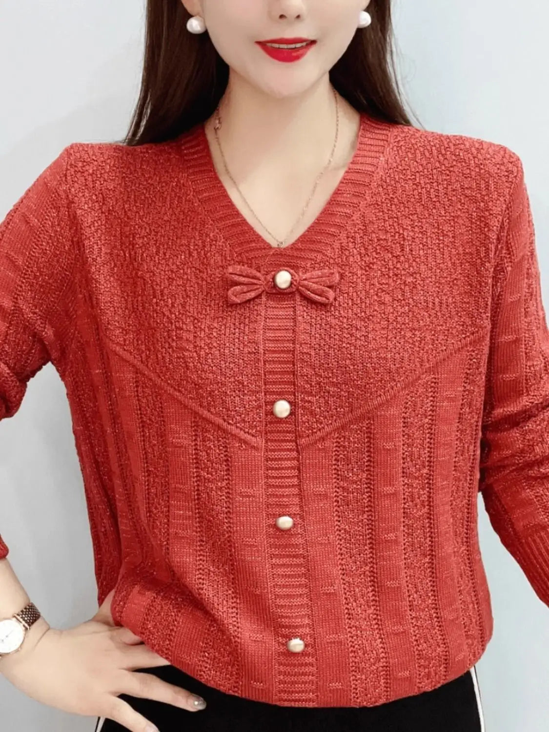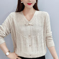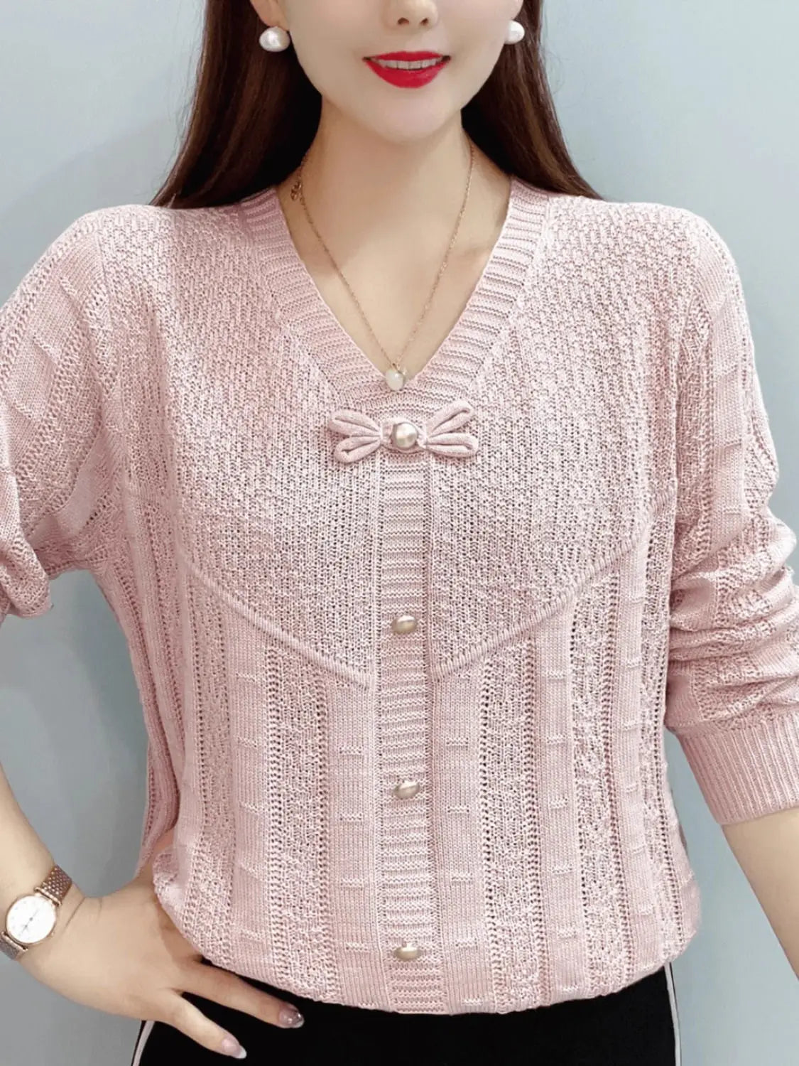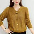 Autumn Bow Hollow Knitted Sweater – Loose Long Sleeve Versatile Top for Women