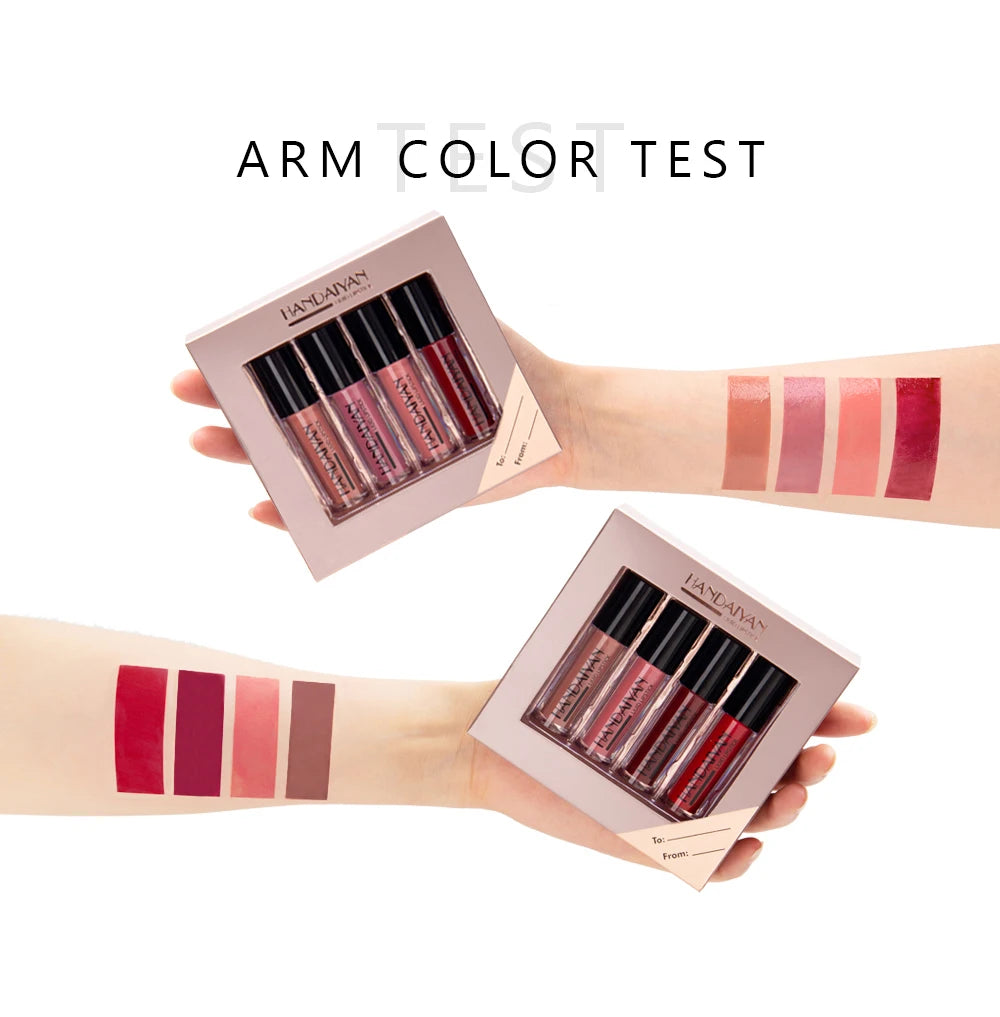 HANDAIYAN 4-Piece Matte Velvet Lip Gloss Set – NonStick Long-lasting Liquid Lipstick