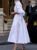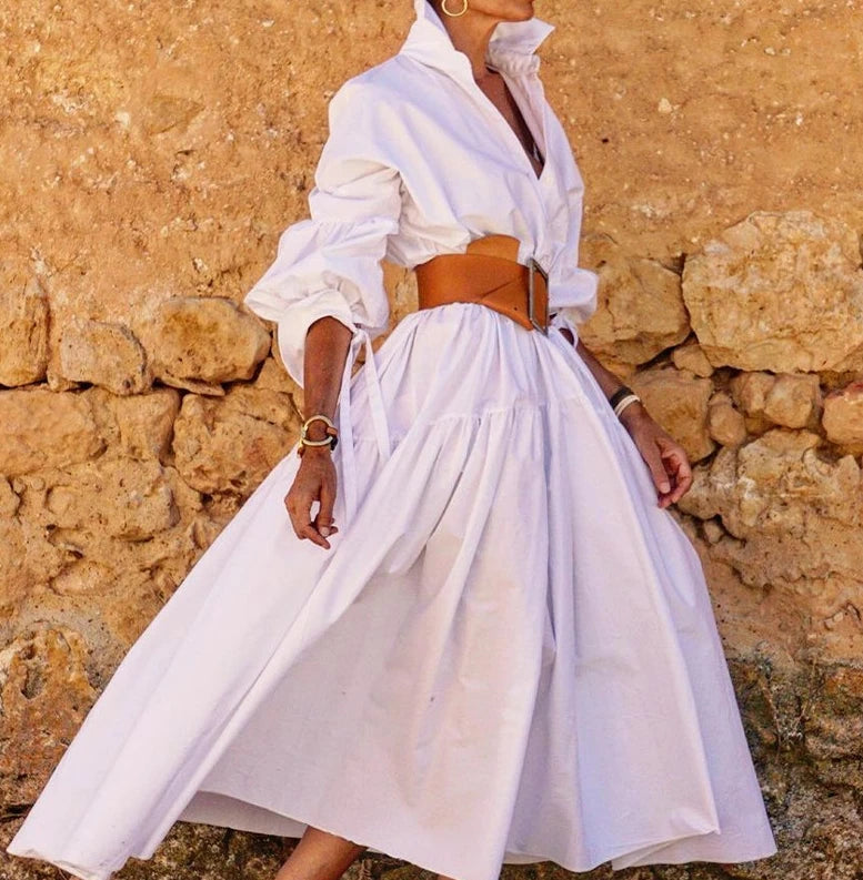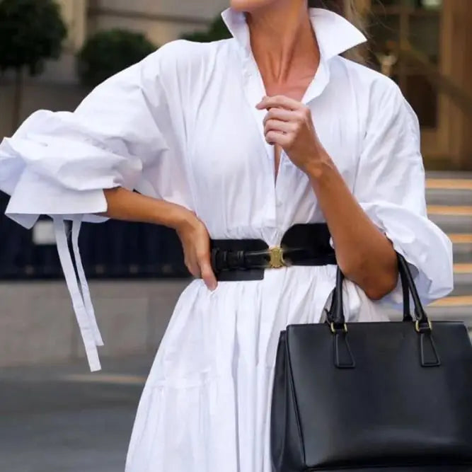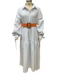 Oversized Women’s Shirt Dress 2024 – Casual Long Sleeve Belted White Dress