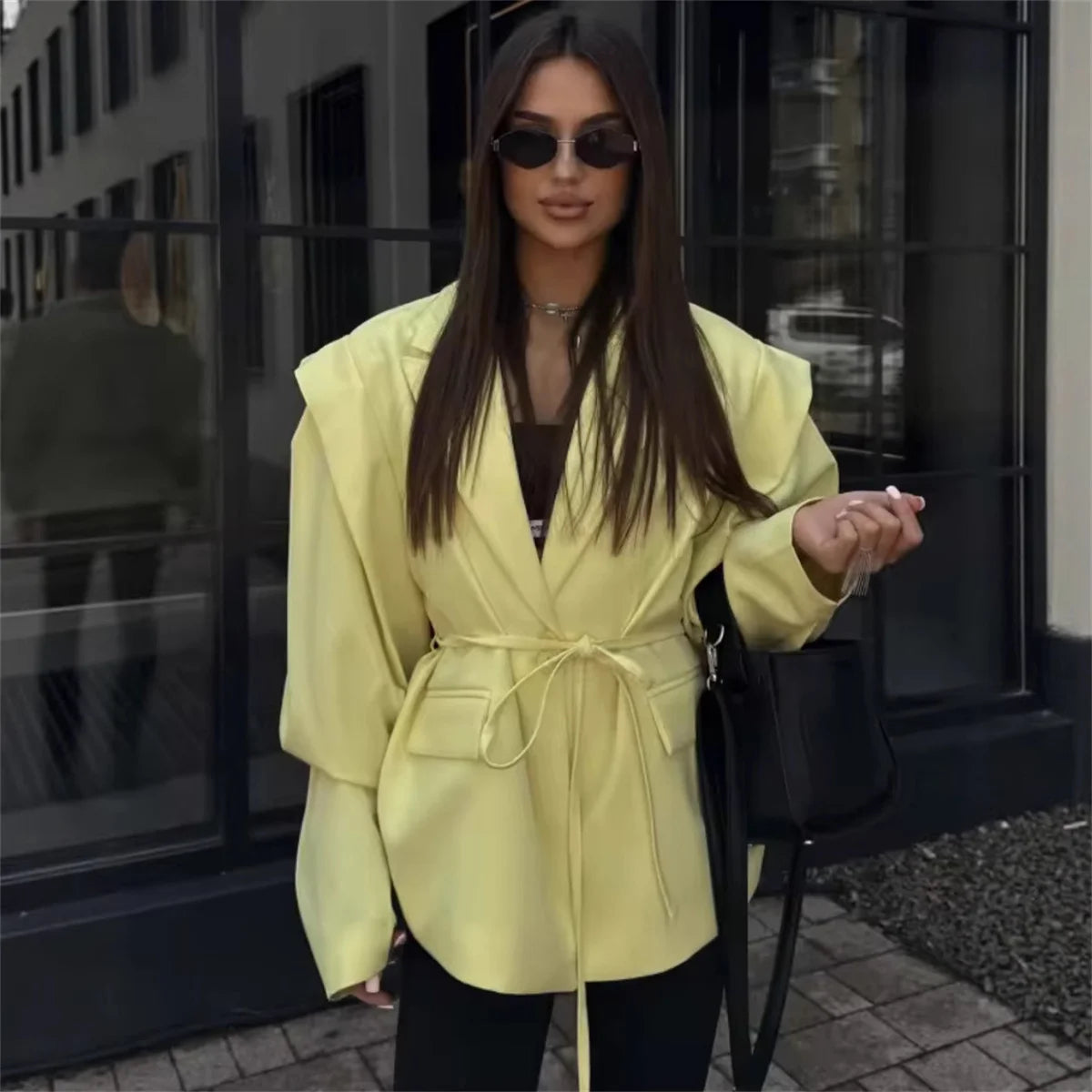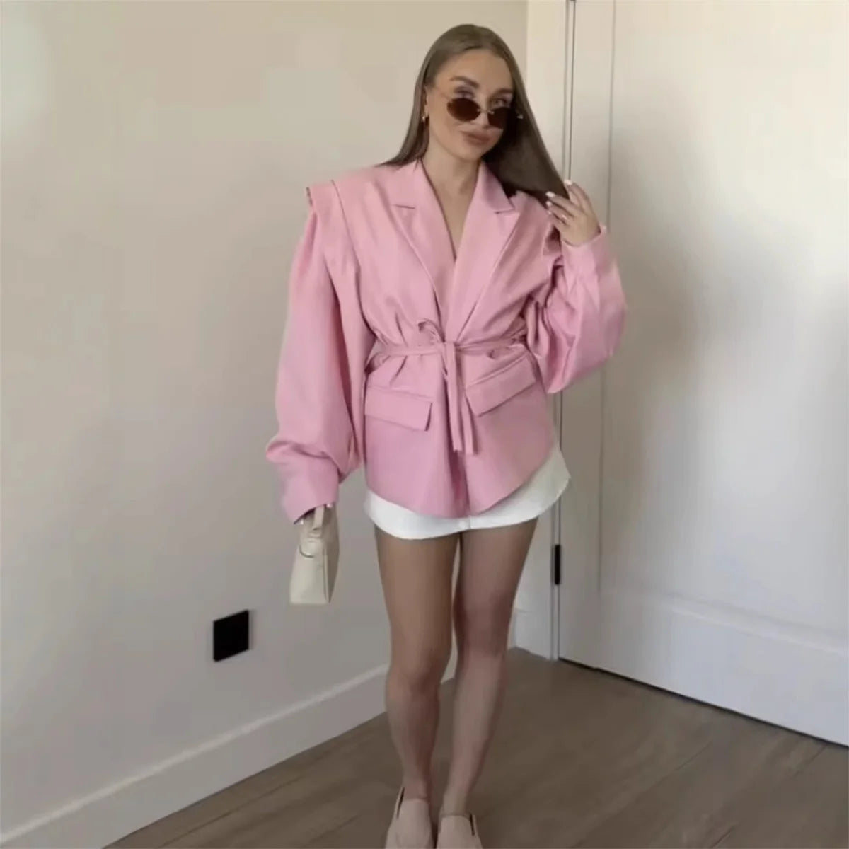 2025 Oversized Solid Lapel Blazer Jacket for Women – Office Lady Style