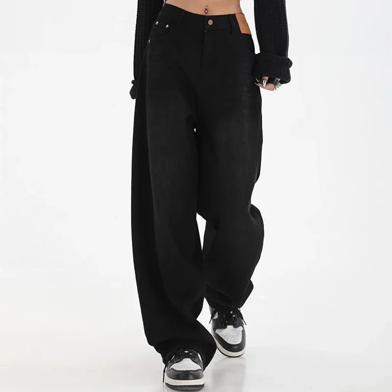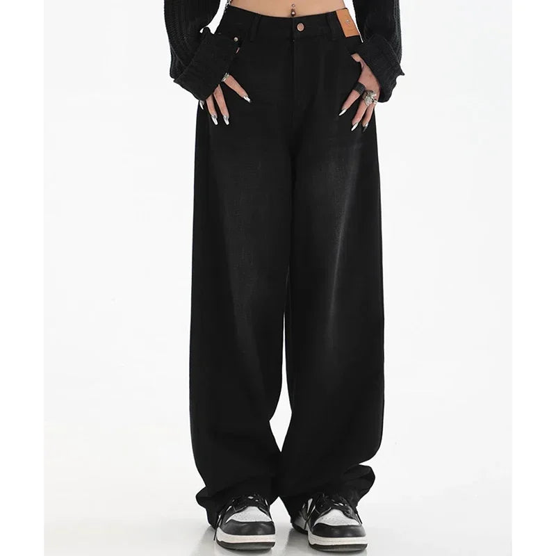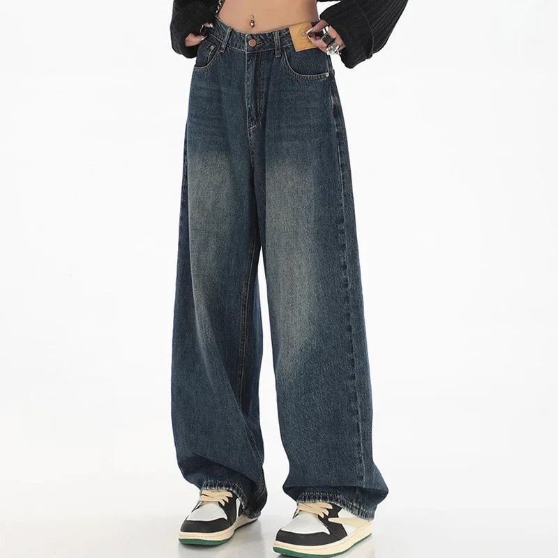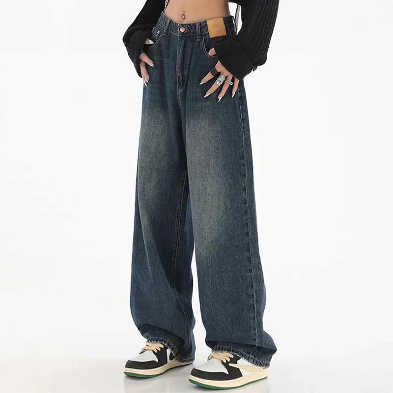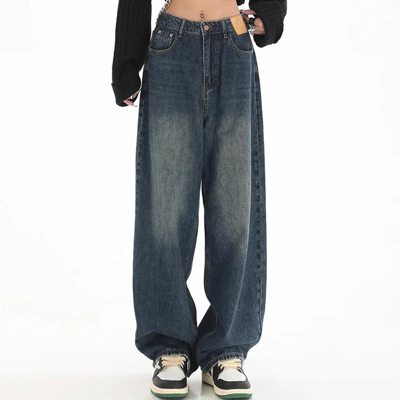 Women's High Waist Wide Leg Jeans – Y2K 2000s Loose Fit Casual Denim Trousers